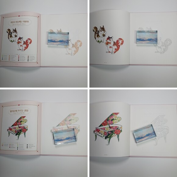 고전 서책 같고 다른 책들과의 차이점을 두었네요. 컬러링할때는 쫘악 펼쳐지는 책이 최고입니다.