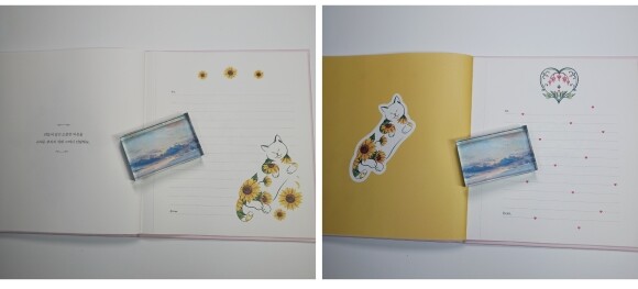책의 마지막 부분에 '잠들어 있던 소중한 마음을 귀여운 편지지 위에 그려서 전달해요' 라는 어여쁜 편지지로 활용 할수 있는게 있네요. 이런 편지지 너무나 좋아했어요.