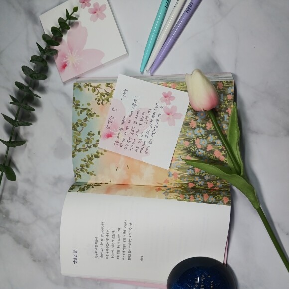 초판 한정으로 식물수채화엽서 4종까지 들어 있습니다. 저 실버 스티커를 좋아해서 간직하고 싶어 책 안쪽에 붙여 두었습니다.