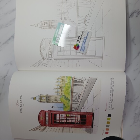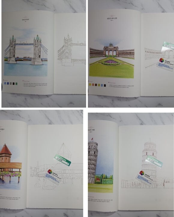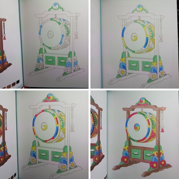 보통 컬러링은 가이드를 바로 보면서 따라 색칠할수 있게 나란히 있는데