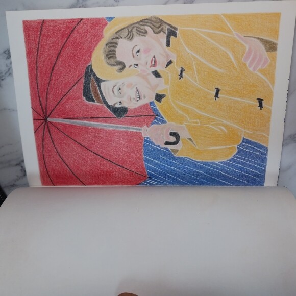 프리즈마 색연필로 한땀한땀 색칠을 공들여서 했구요. 빗물은 다들 아시는 흰색 펜으로 사용하였습니다.