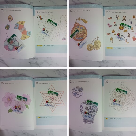라인에 점선이 있어서 라인을 따라서 그리면 집중력도 길러지고 치매 걸리지 않게 뇌운동까지 되는