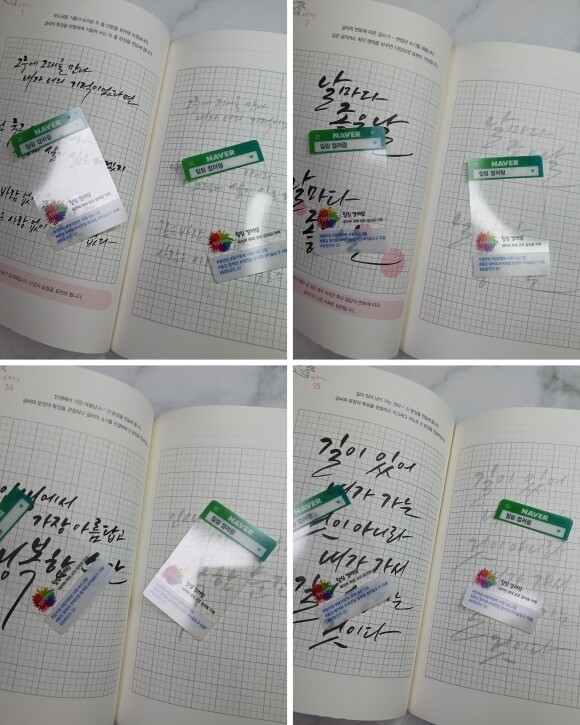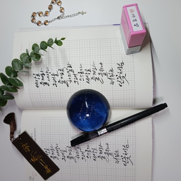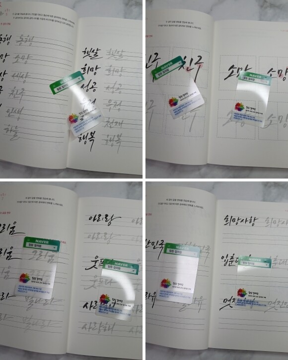 뒷장에 분명 비칠것이 분명하여 책받침을 대로 사용하였습니다.