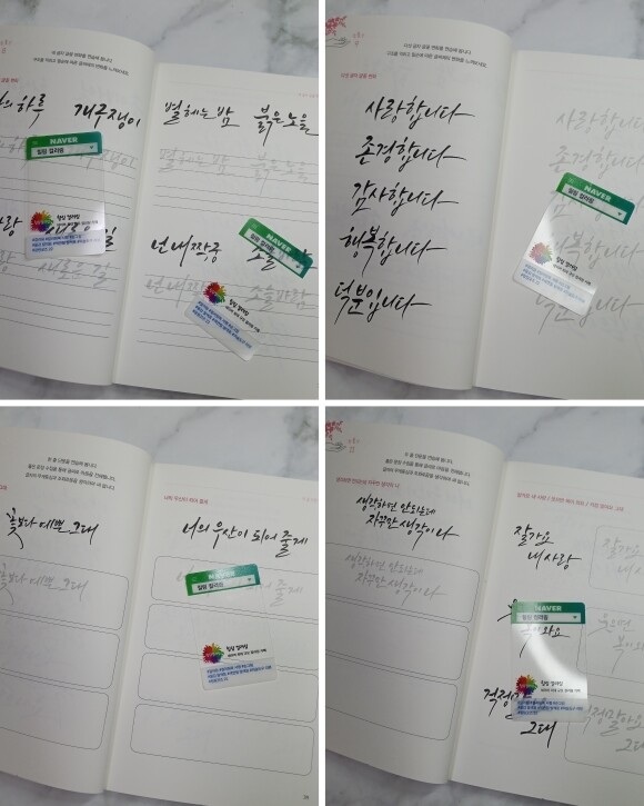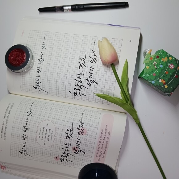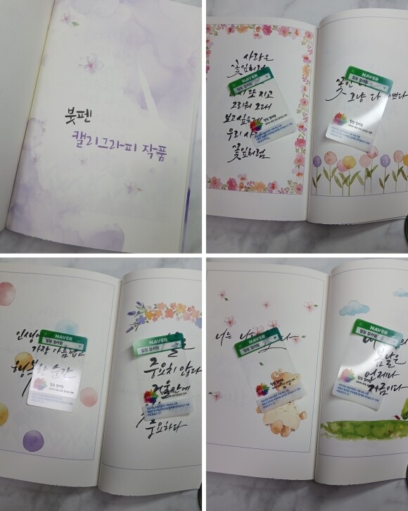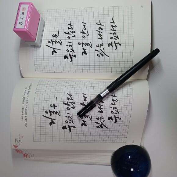 첫장을 펼치면 이렇게 가로로 글씨가 새겨져 있습니다.