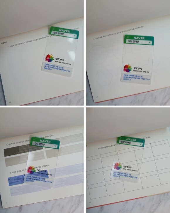 그리고 연습하기와 색상표도 책 뒤쪽으로 옮기셨어요.