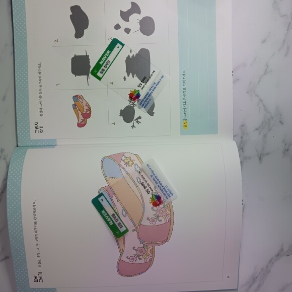 절취선이 있어서 잘라서 앞쪽에 가이드를 보면서 색칠해도 되고