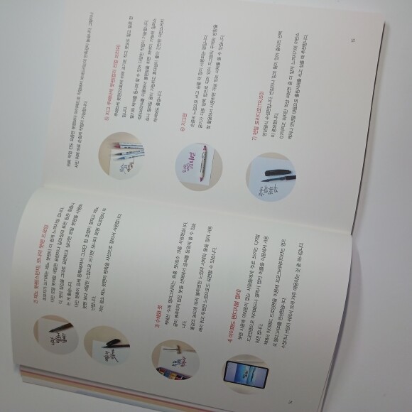 연습 종이에 각종 붓펜으로 책을 보며 연습을 따라 써보았습니다.