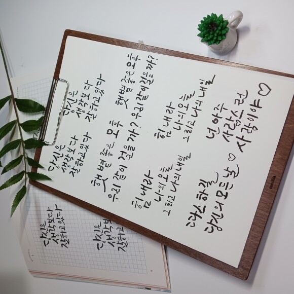 뛰어나게 잘 쓰지는 못했지만 못 쓰는 편이 아니였던 지라 우연찮게 선생님에게 발탁이 되어 칠판에 아침 자습을 대필하게 되었던 시절......부터 글쓰는걸 좋아했답니다. 서예부도 가입했었고 펜글씨반에도 가입도 한 적이 있었던