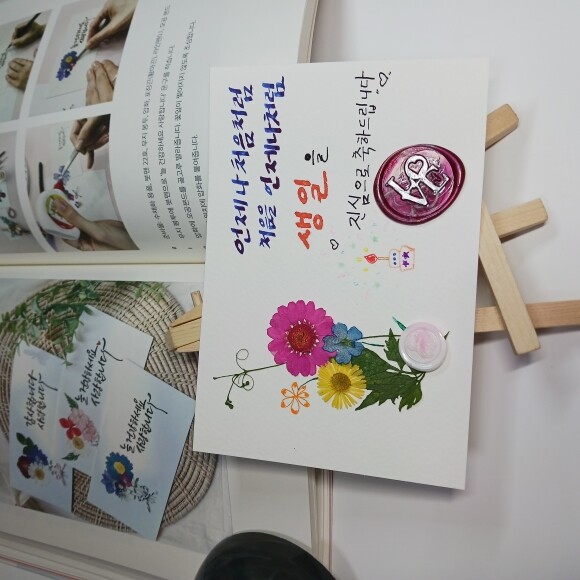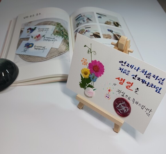 압화 용돈 봉투 - 봉투 대신 엽서에 압화꽃과 실링왁스를 이용한 축하카드로 만들어 보았습니다.