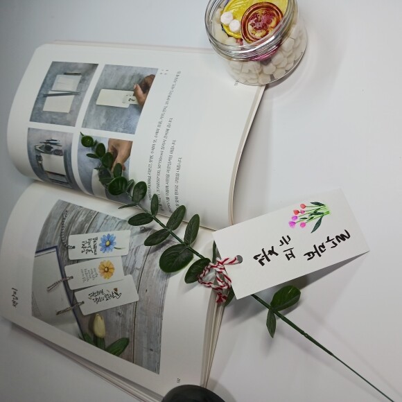 책갈피 - 요즘은 책갈피 구하기가 힘들어서 직접 다양한 재료로 직접 만들기도 해서 이번 기회에 저도 한번 만들어 보았는데요. 역시 글씨체가...안습이에요...