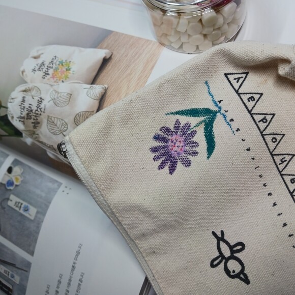 캘리 에코백& 복주머니 스트링 파우치& 여행용 파우치 - 에코 파우치가 있는데 물이 들어서 사용을 안하고 있었는데