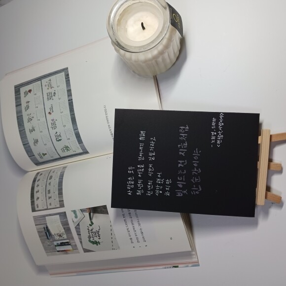 향초 캘리- 집에 향초가 많은데 책에서 배운대로 이제 이뿐 향초들로 꾸밀수가 있어서 너무 행복합니다.