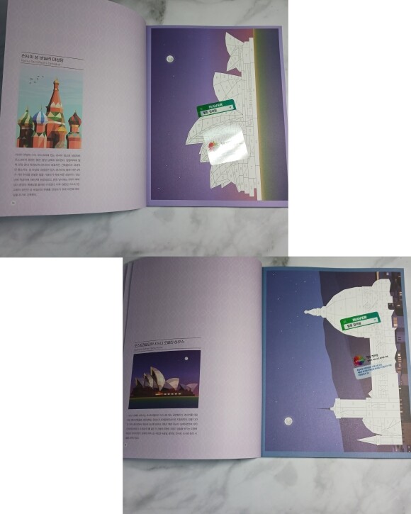 이 책은 31개의 인기 있는 아트워크를 포스터&컬러링북으로 만들어서 책을 넘기다 보면 쉽게 후두두둑 깔끔하게 떨어져서 색칠할때도 편안하게 색칠한후 장식을 할수 있어서 좋은것 같아요.