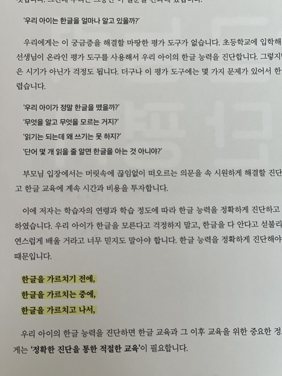 정확한 진단을 통한 한글 교육이 중요하다고 합니다.