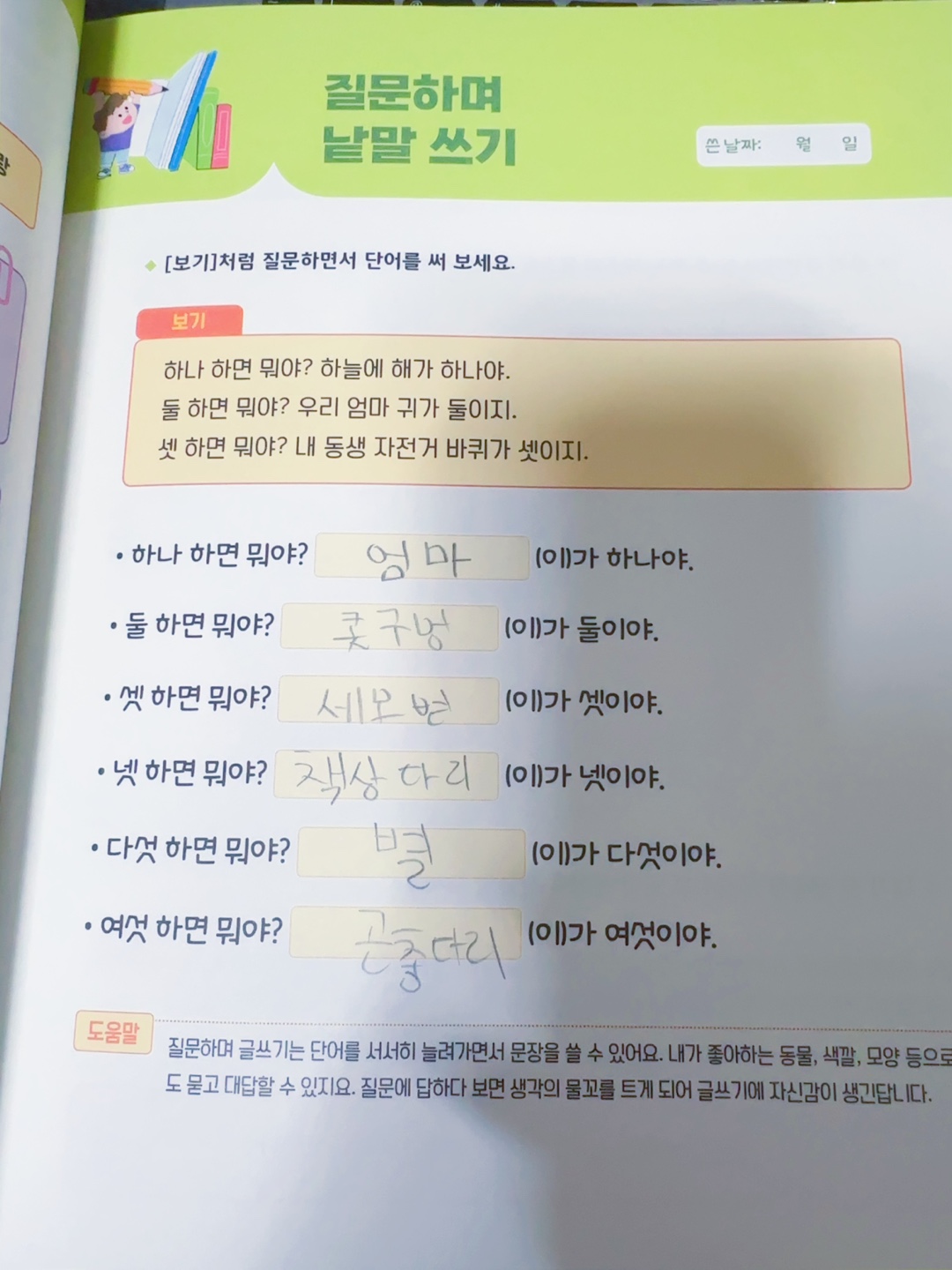 하지만 쓰기훈련은 엄마가 직접 지도해 주기가 쉽지 않네요 .