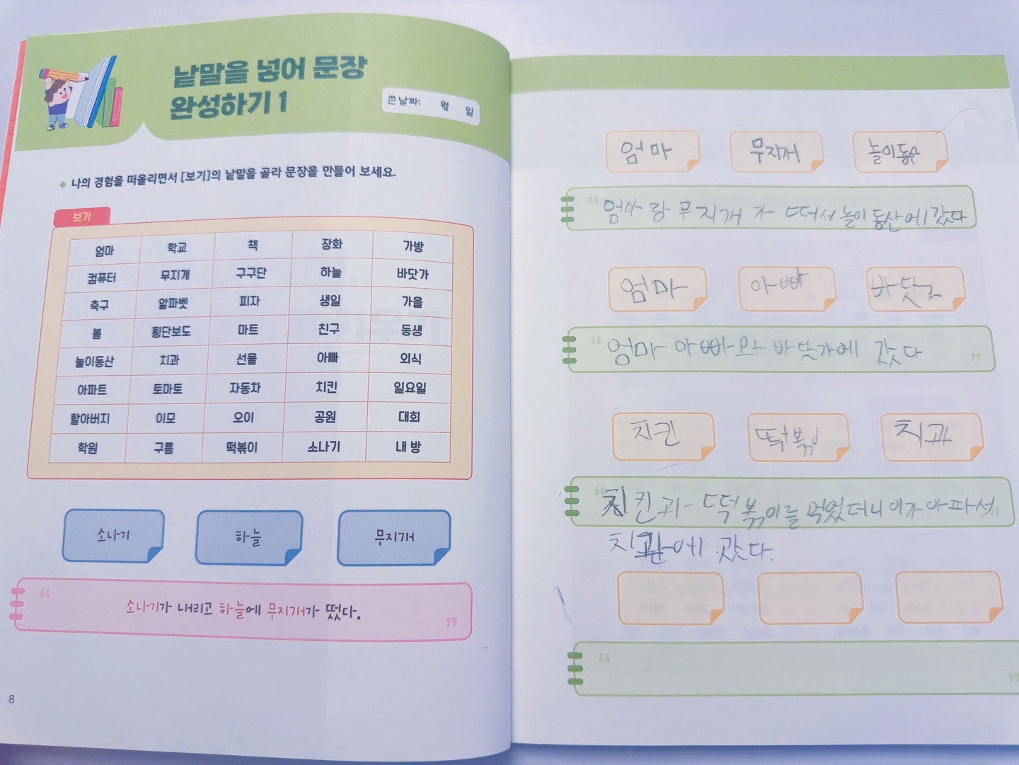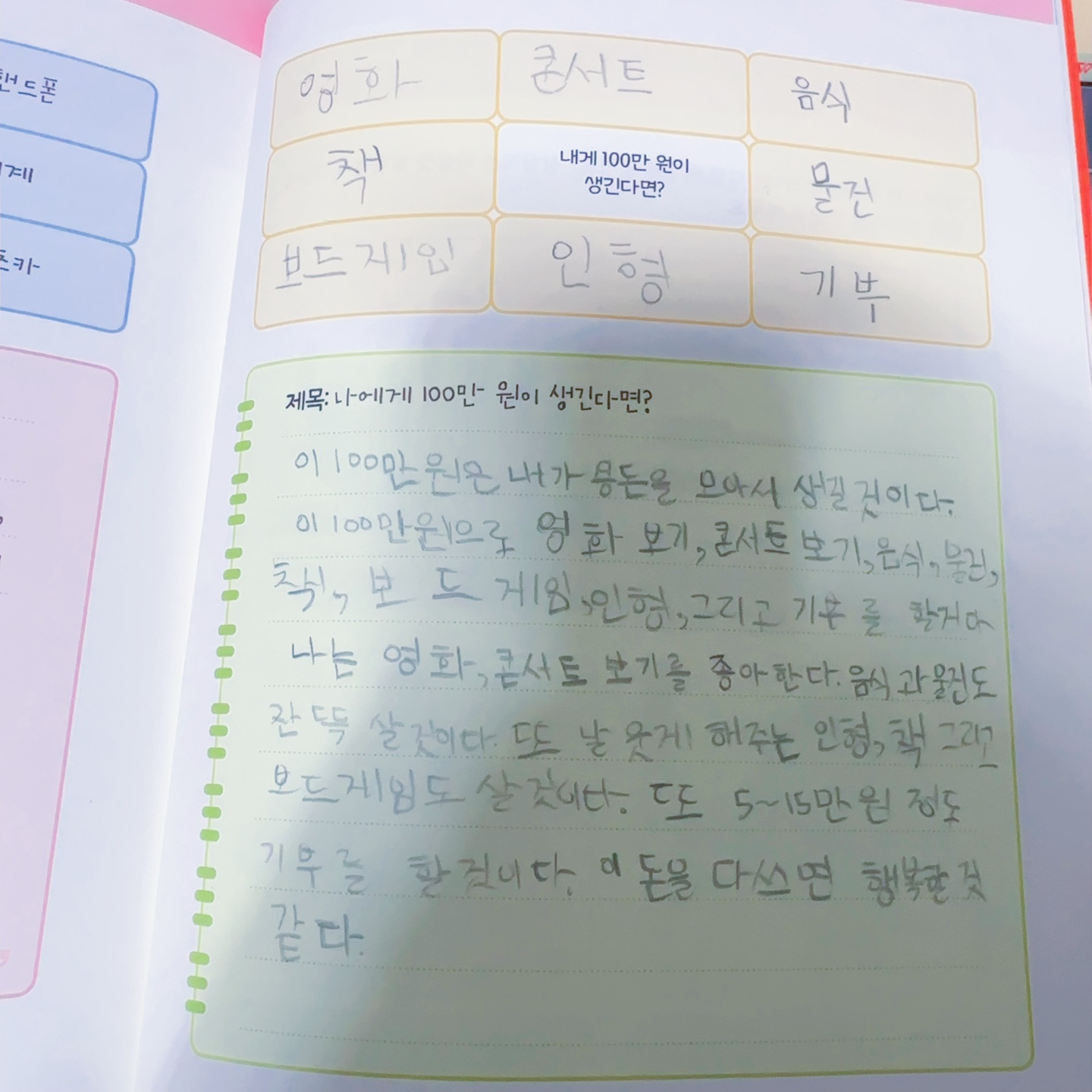 정답없는 자유롭게 글쓰기 연습을 할수 있어서 아이가 자기의 생각을 적을수 있어서 너무 좋았어요.