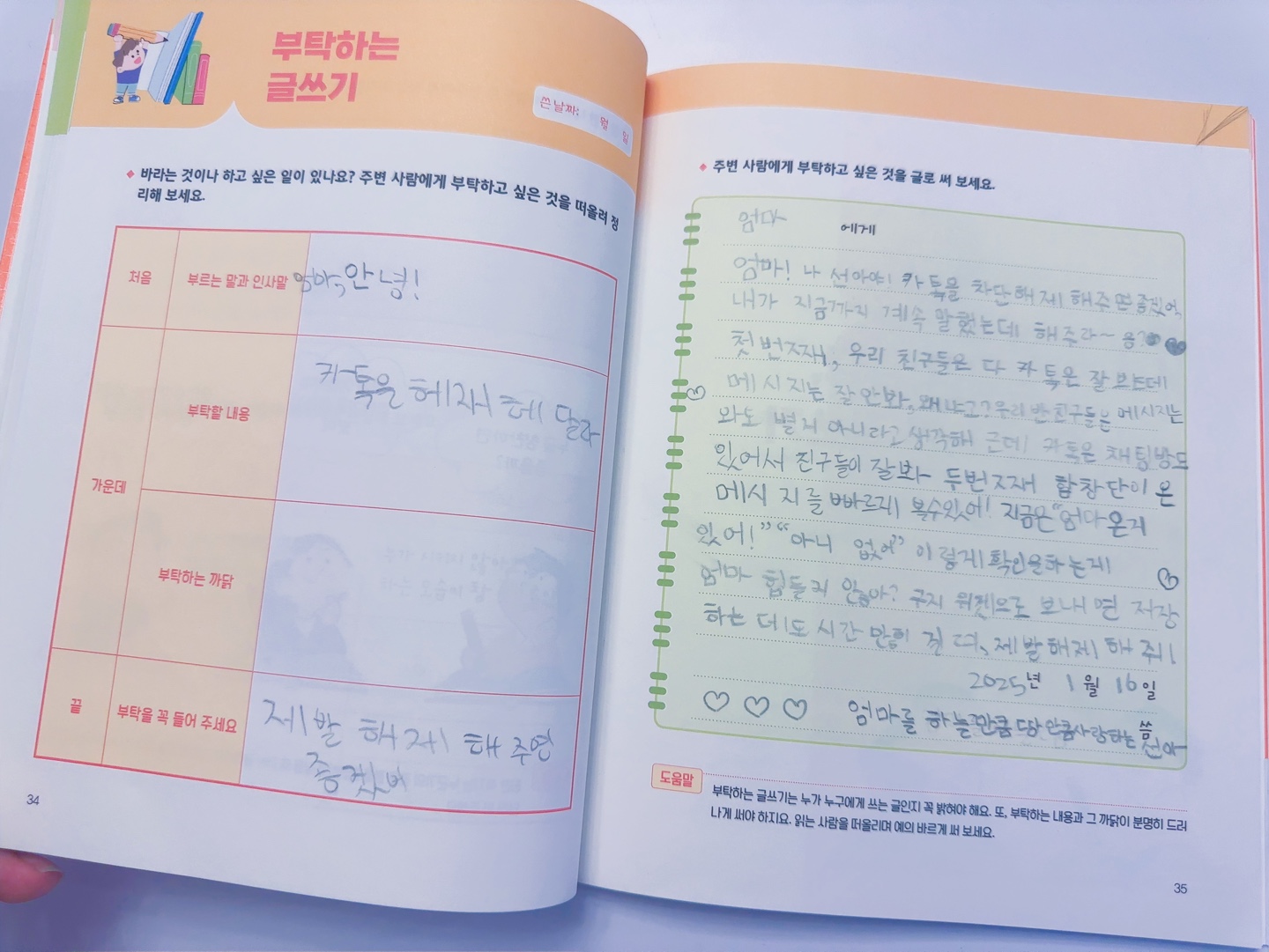 엄마가 글쓰기 연습을 하라니 엄마하테 이런 저런 요구를 청하네요..
