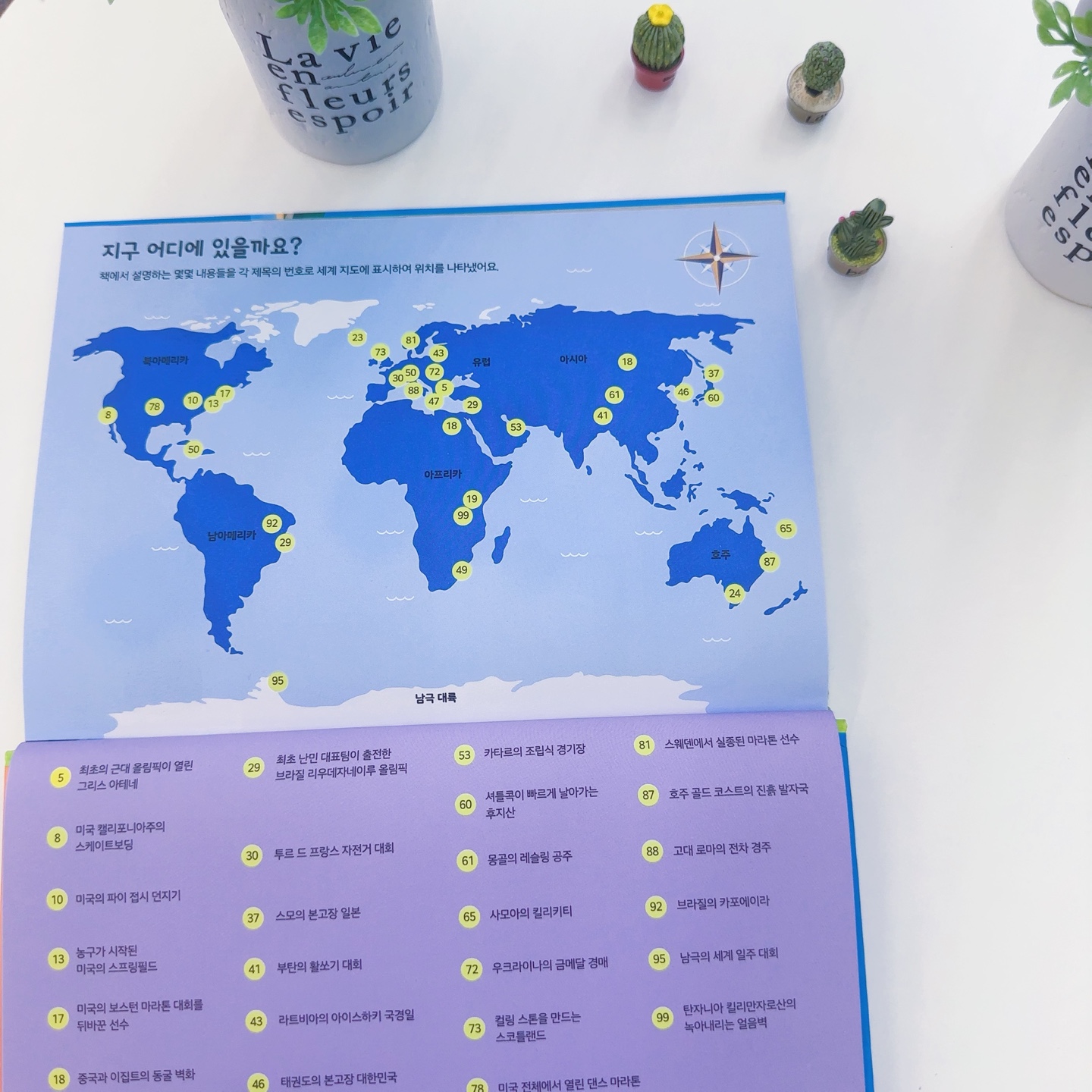 책에 실린 스포츠 이야기의 번호를  세계 지도위에서 찾아보면서 어느 나라 어느 지역의 이야기인지 확인해 보고 <찾아보기> 코너를 통해서 원하는 내용을 쉽게 찾아볼수 있어요