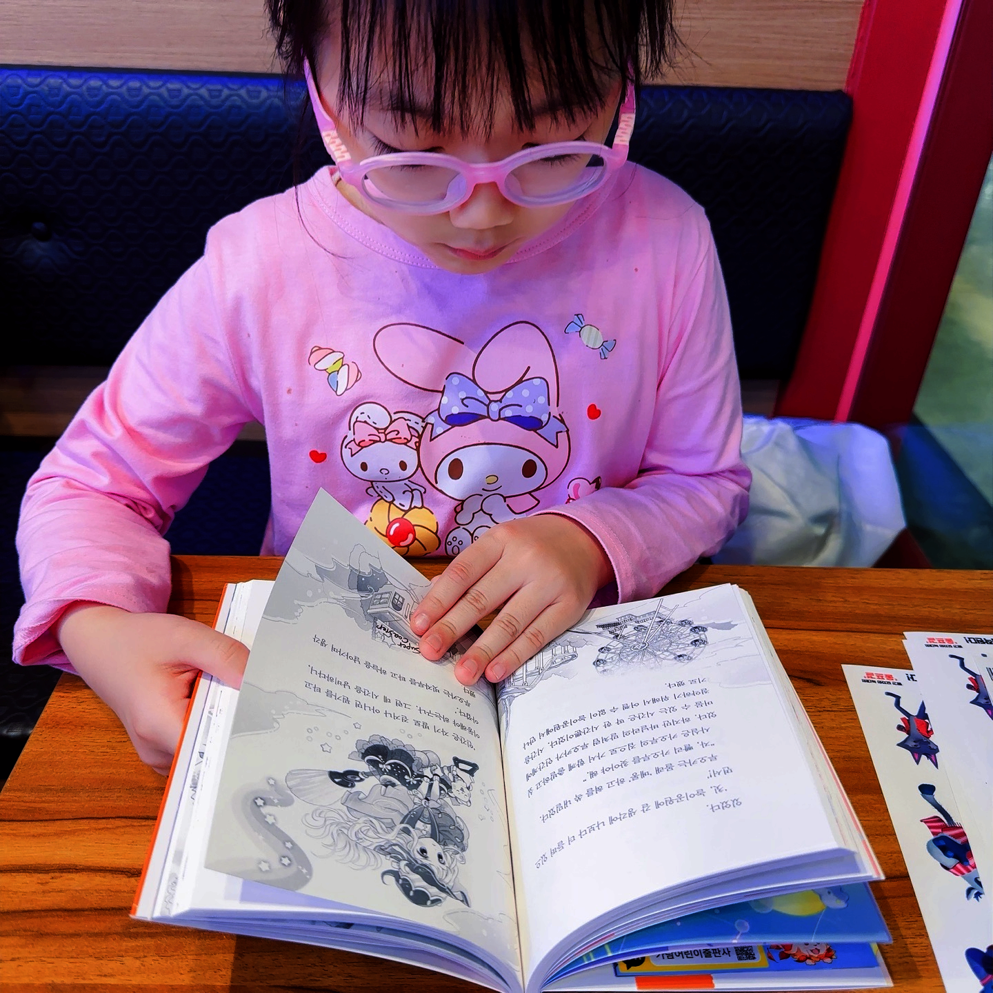 파란 크로미 옷을 입고 책을 읽는 모습이 너무 귀엽지요