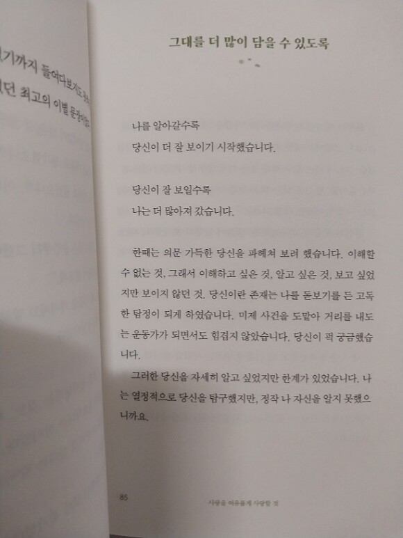 나를 알아갈수록 당신이 더 잘보이기 시작했습니다. 당신이 잘 보일수록 나는 더 많아져 갔습니다. p. 85