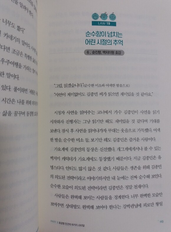 호감가는 사람이 되는 기술, 호감형 인간의 스타일 등 체계적으로 설명해서 따라가기 쉬웠어요. 자신이 얼마나 호감형인지 객관적으로 테스트 점수를 알아볼 수 있고 방법을 실천하는데 도움이 되네요.