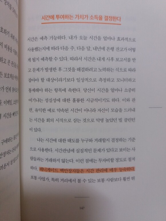 시간은 예측 가능하다. 내가 오늘 시간을 얼마나 효과적으로 사용했는지에 따라 다음 주, 다음 달, 내년에 은행 잔고가 어떻게 될지 예측할 수 있다. 레니게이드 백만장자들은 시간 관리에 매우 능숙하다.p.147