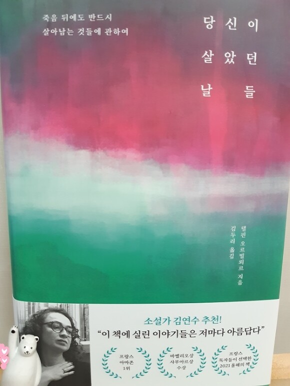 우리와 마찬가지로 프랑스도 팬데믹으로 인해 많은 고통을 겪었고 그건 아직 끝나지 않은 상태입니다. 그로 인해 죽음조차 이전에 생각도 못했던 방식으로 받아들여햐 해요. 가까운 사람의 마지막마저 온전히 슬퍼할 수 없이 랍비라는 신분으로 보내야했던 심정을 드러내요. 종교적 색채가 짙지만 죽음을 대하는 자세에 대한 철학으로 이해하면 보편적으로 공감할 수 있어요.