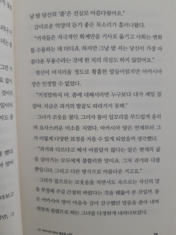 톰은 아키시아 양이 마음속 깊이 갈구했던 말들을 쏟아 내며 희망과 설렘으로 떠는 그녀를 다정하게 내려다보았다. p.29