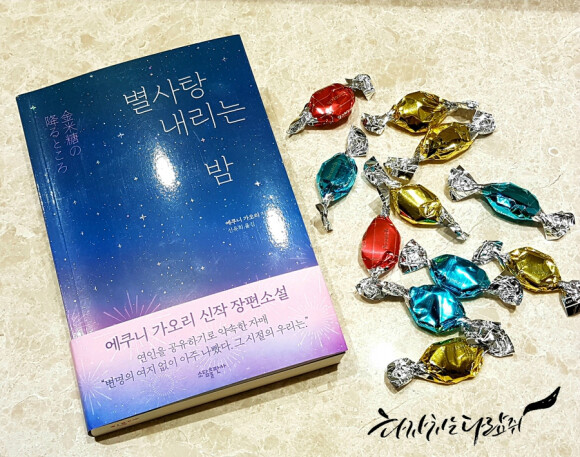 세상엔 상상 못 할 다양한 사랑이 있다지만 『별사탕 내리는 밤』에서 만난 사랑 이야기는 오래도록 잊지 못할 것 같다. 더럽거나 엽기적인 행위는 없지만 생각해보면 혀를 쯧쯧 차며 고개를 절레절레 흔들게 될 그 관계 속에서 나는 사와코, 미카엘라, 다쓰야, 아젤렌, 다부치란 청춘을 만나 그저 들어주는 입장으로 한참을 귀 기울였다. 주인공은 사와코와 미카엘라지만 각 인물의 시점으로 돌아가며 진행되기에 독자는 그 청춘들에 빙의하여 오롯이 그 인물로 분하게 된다. 400페이지가 넘는 장편소설임에도 이렇다 할 급반전 없이 끝을 향해 달린 이 특별한 여정은 깊고 진한 여운을 남기며 그렇게 내 추억의 한 페이지로 자리 잡았다. 문득 바라본 밤하늘에서, 하늘에 반짝이는 별을 보며 별사탕을 떠올렸던 순진한 어린 자매의 모습을 떠올리며 이 아쉬움을 달래본다.