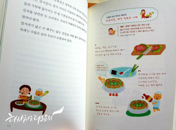 채소라는 주제로 이렇게 다양한 이야기를 끌어낼 수 있다니! 배꼽 잡고 웃을 만큼 유머러스하진 않지만 술술 읽혀서 좋았고 굳이 예쁜 척하지 않아도 소박한 글과 귀여운 그림이 사랑스러워 한참을 즐겁게 읽었다. 생각할 거리가 있을 때는 양상추를 뜯고 기분에 따라 드레싱을 바꿔가며 먹는 샐러드. 아스파라거스를 가니쉬 삼아 툭 터트려 먹는 수란. 달콤하게 졸인 양파. 설탕 솔솔 뿌린 토마토. 아니 이거 읽다 보니 에세이야, 그림책이야? 엄마의 정성과 어린 시절 추억 그리고 오늘을 살아가게 하는 따스한 응원이 담긴 채소의 온기를 작가는 독자에게 기꺼이 내어주며 손을 내민다. 『채소의 온기』를 붙잡고 있자니 어디선가 맴맴 매미 우는 소리가 들리는 듯하다. 그러다가 이내 힐링 영화 <리틀 포레스트>도 떠오르고 어린 시절 시원하게 먹었던 오이냉국, 굉장히 좋아하지만 번번이 썩은 녀석을 고르는 탓에 거리를 두게 되는 아보카도까지. 정신을 차려보니 생각에 생각이 꼬리를 물고 각종 과일과 먹고 싶은 음식까지 떠올리고 있었다. 종종 등장하는 '고양이 손도 만드는 레시피'의 요리는 또 어찌나 맛있어 보이던지. 자꾸만 이 책의 정체(?)를 의심하게 되더라는... 그러다 문득 입맛이 돌아 냉장고를 탈탈 털어 남아 있는 채소를 확인하고 기름을 두른 팬에 열을 올려 자투리 채소를 넣고 달달달. 고소하게 볶아 한입 가득 털어 넣고는 그 따스한 온기에 심심한 위로를 받으며 그 순간을 오롯이 만끽했다. 두 작가님이 전하고자 했던 그 따스함, 잘 느꼈습니다! 예쁜 책 감사히 잘 읽었어요. ^^