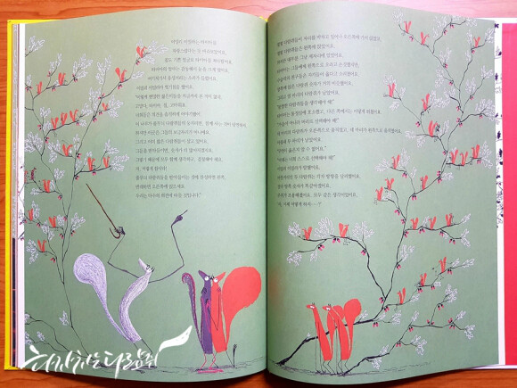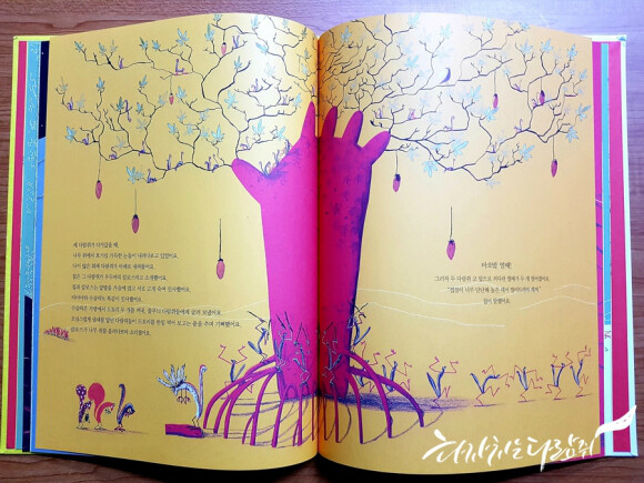 노란색 표지에 가만히 손가락과 코를 맞대고 있는 다람쥐 두 마리. 내가 좋아하는 다람쥐가 주인공인 동화라 그냥 지나칠 수 없었다! 귀여운 그림과 주인공이 다람쥐라는 사실만으로 선택했던 『떡갈나무와 바오밥나무』. 다람쥐가 한 마리, 두 마리... 열 마리... 셀 수 없을 만큼 많이 등장하는데 이 작은 녀석들도 자신만의 세계에서 나름의 위계질서가 있고 힘으로 약자를 누르려는 야비한 녀석도 있는 것이 인간 세상과 참으로 똑 닮았다. 이들이 어떤 이야기를 펼치는지 귀 기울여 보자.