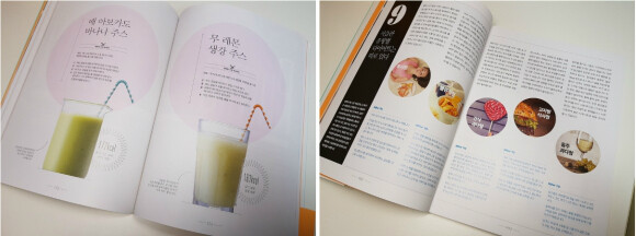 1달간 매일 하나씩 해 먹어도 남는 35가지 샐러드 레시피와 15가지 디톡스 주스 레시피 그리고 자그마치 50가지 천연팩 레시피까지! 책의 구성이 상당히 알차고 다양해서 가장 마음에 드는 것부터 하나씩 골라 따라 해보는 재미가 쏠쏠할 것 같다. 아쉽게도 2주나 마트에 가진 못한 관계로 재료를 준비 못 해 눈으로 즐기며 군침만 흘리고 있지만 이번 주말엔 꼭 장을 봐와서 샐러드 요리 1가지와 음료 1가지를 직접 만들어 볼 생각이다.