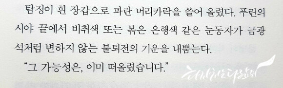 파란색 머리카락에 그윽한 눈동자까지. 표지를 장식한 이 남자가 바로 소설의 주인공, 우에오로 조 탐정이다.