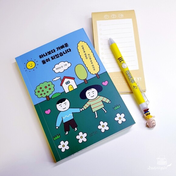 보이는 게 전부는 아니겠지만, 글을 읽는 내내 부부의 여유롭고 느긋한 마음가짐을 간접 체험할 수 있었다. 늘 시간에 쫓겨 마음이 조급한 내게 부부의 심플한 슬로우 라이프는 그간 간절히 원했던 인생의 쉼표였다. 어쩌면 나도 이 부부처럼 살 수 있지 않을까, 아니 이 부부처럼 정말 살고 싶다. 지금 이 순간에도 주변 가득 쌓인 물건을 보면 한숨부터 나오지만, 다시 천천히 시작해볼 생각이다. 무조건 버리는 게 아닌 각자에게 맞는 미니멀 라이프로 좀 더 가뿐하고 쾌적한 일상에 꼭 도달하리라! 알콩달콩 살아가는 이야기와 더불어 페이지 곳곳에 등장하는 귀여운 일러스트에 힐링하며 즐겁게 읽은 에세이였다. '생활도 관계도 버릴 것 없이 딱 맞게 산다!'란 말을 가슴에 새기며, 괜스레 두둥실 떠오르는 마음에 당장 청소를 해야 할 것만 같다. 에린남 부부의 『하나보다 가벼운 둘이 되었습니다』, 미니멀 라이프와 더불어 소소한 일상 이야기를 좋아하는 분들께 추천!