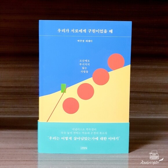 수많은 영상이 유혹하는 유튜브란 바다에서 한 번 빠져들면 계속 보게 되는 영상 중 하나가 바로 한국인의 위대함과 따스함을 칭찬하는 일명 '국뽕 영상'이다. 코로나가 우리 삶을 잠식한 지 어느덧 1년 10개월. 코로나와 함께 새해를 맞이할 생각을 하니 답답함이 앞서는데... 이런 고통스러운 나날에 지치고 피로한 우리에게 위로와 자부심이 절실히 필요한 상황. 그래서 우린 작은 미담에도 눈물 짓고 환호하며, 일종의 카타르시스를 느끼는 게 아닐까? 오늘은 사건사고 잘 날 없는 보도의 현장에서 삶의 다양한 순간을 목격한 기자, 앵커이자 저널리스트인 박주경 씨의 글을 통해 마음의 불안을 해소하고 치유했다. 고난에도 무너지지 않는 사람들의 이야기와 우리가 절대 잊어서는 안 될 사건들을 담은 『우리가 서로에게 구원이었을 때』. 이건 뭐... 제목부터 강렬하다.