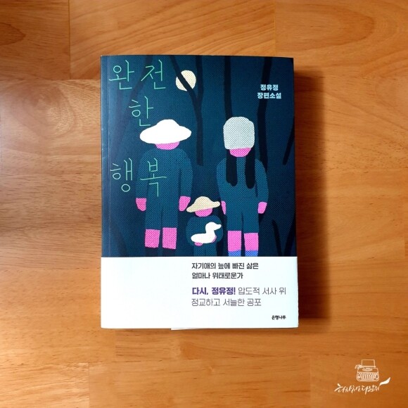 오래도록 기다린 정유정 작가의 신간이다. 완벽한 글이 더 완벽해질 때까지 원고를 손에서 놓지 않는 치밀한 그녀이기에 2년이란 시간쯤은 얼마든지 기다릴 수 있었다. 정말 읽고 싶은 책을 손에 넣었을 때의 가슴 벅찬 희열을 선사하는 독보적인 작가. 소문난 집순이인 내가 자리를 박차고 일어나 만나러 갈 거의 유일한 작가. 사인회에서 마주한 고작 1분여의 순간으로 지금까지도 내 가슴을 설레게 하는 그녀. 정유정이 돌아왔다. 자기애의 늪에 빠진 인간의 삶이 얼마나 위태로울 수 있는지 여실히 보여주는 『완전한 행복』. 우리에게 진짜 행복이란 무엇인지, 그 행복에 완전함이란 존재할 수 있는지 깊은 고민에 빠지게 하는 작품이다.