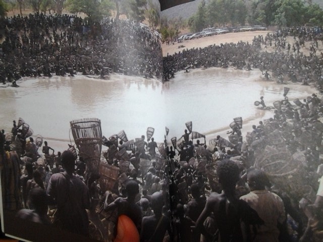 이 장면은 도곤족의 신성한 낚시의식이라고 불리는 안토고축제의 모습입니다. 정말 많은 수의 장정들이 이 호수에