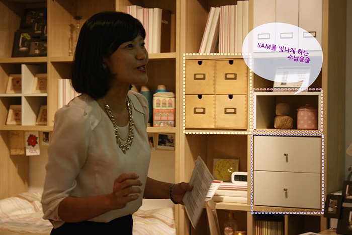 조윤경 작가 뒷편으로 보이는 SAM(샘) 책장의 수납 아이템!!