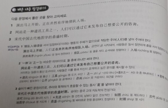 항상 파트 거의 끝부분에 <배운 내용 점검하기>라고 짤막한 문제들을 다루는데 해설이 굉장히 마음에 들고 외워야할 단어들도 정리되어 있어서 좋은 거 같아요. 이 책에는 단어들이 굉장히 많이 나오거든요? 그래서 이 단어들만 확실하게 외운다면 어느 정도는 회화까지 가능하지 않을까... 라는 생각이 드는 거 같았습니다.