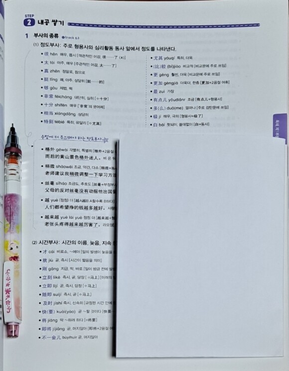 모르는 부분이나 생소한 부분은 별표 쳐가면서 공부하기... HSK 4급을 땄었던 과거로는 사실 6급 독학 조금 많이 힘들 거 같아요. 그래도 찐으로 6급을 대비하면서 공부하시는 분의 경우에는 이 책으로도 충분히 6급을 딸 수도 있겠다라는 생각이 들었습니다. (전제가 부지런이지만요..!)