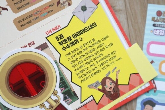 책뒤쪽에는 네임스티커와 단서찾기용 돋보기가 들어있어요~