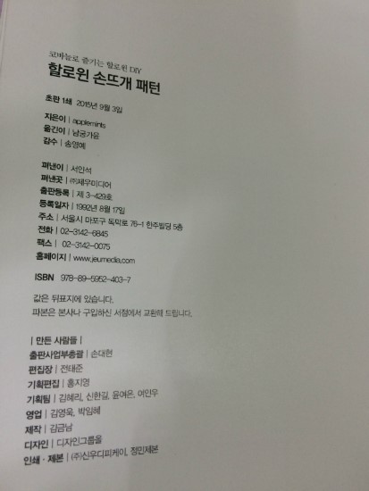 할로윈 손뜨개 패턴은 일서를 번역한 책으로 ~~~