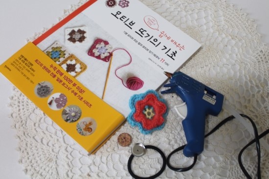 코바늘로 모티브를 뜨기 위해 필요한 도구들과