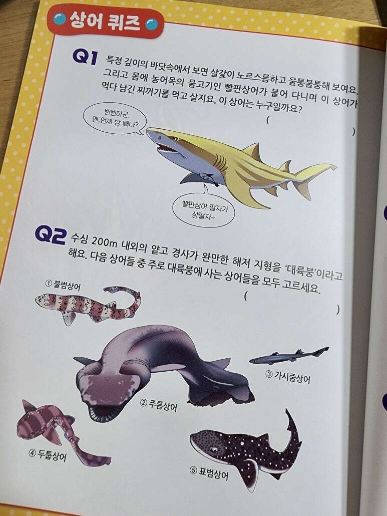책의 마지막 부분에는 상어 퀴즈가 수록이 되어있어요.