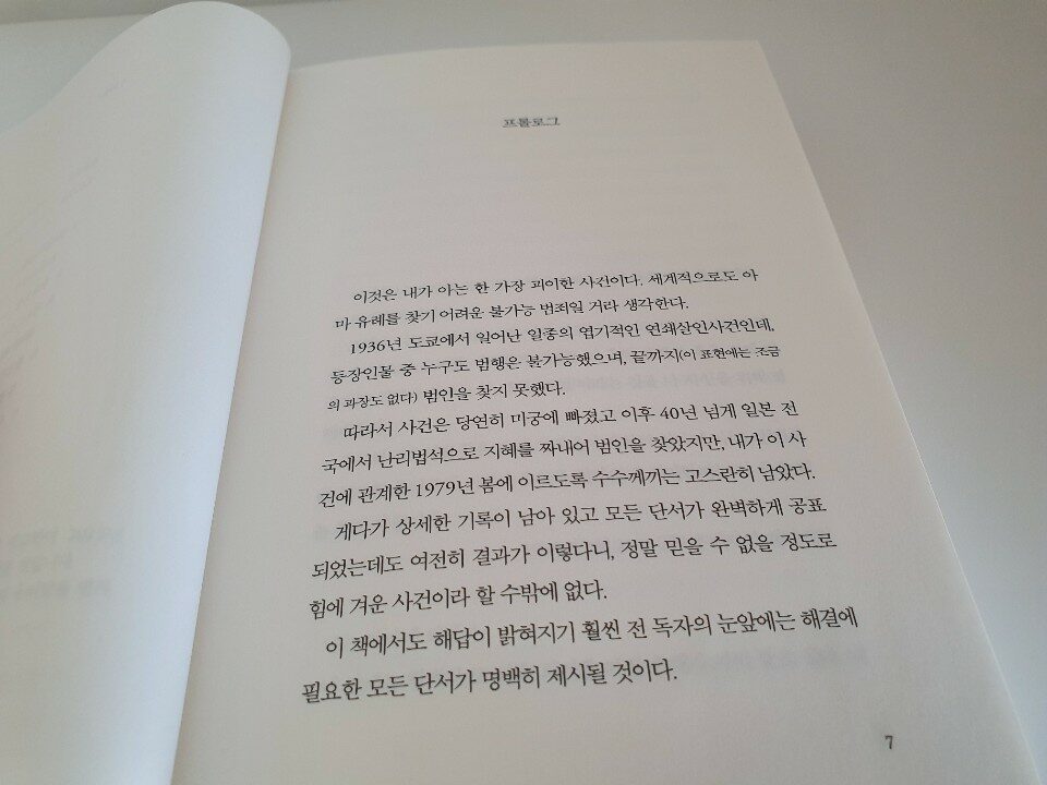 일단 1980년 작품이고 최근에 사마다 소지 작가가 직접 개정한 것이라 지금 읽어도 전혀 문제가 없습니다. 아마도 개정판이 아니더라도 오래된 작품이라는 거리감 없이 읽을 수 있을 것으로 생각됩니다. 작품의 시점은 그다지 문제가 되지 않기 때문입니다.