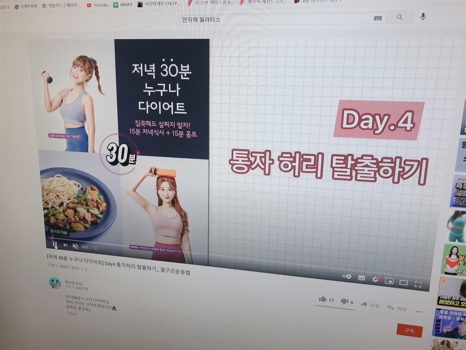 전 이제 일주일차라 입문용으로 준비운동과 안자매 선생님들 필라테스 홈트 등으로 15분 내외로 하고 있는데