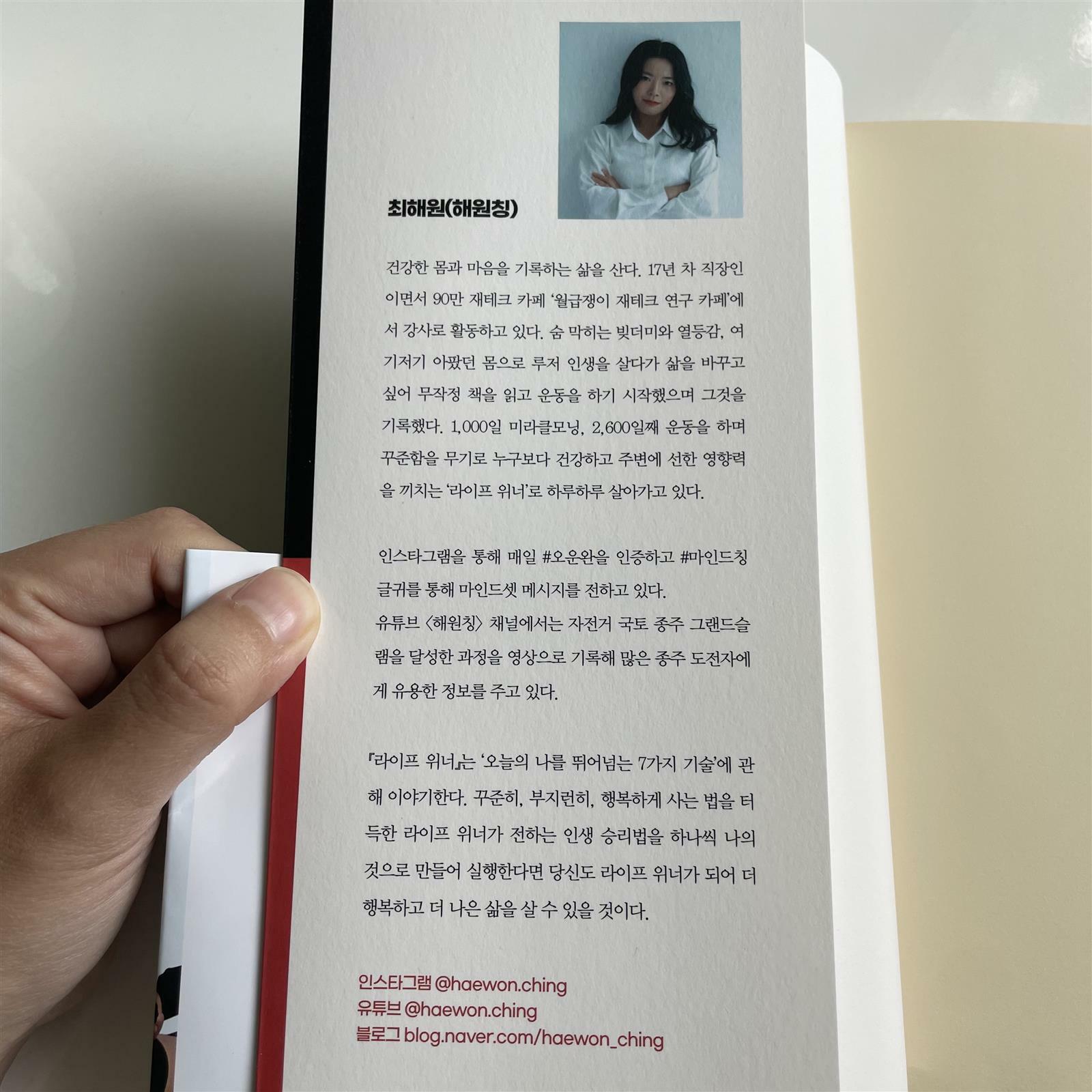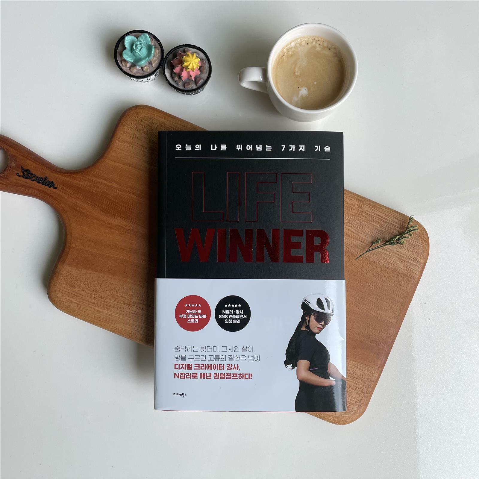 아이 둘을 키운다는 핑계로 책이라고는 레시피 북만 파고드는 요즘 혼자일 땐 정말 꿈 많고, 목표있는 여성이었는데 요즘은 육아라는 벽 앞에 차일피일 미루는 게 습관이 되어버렸어요 이렇게 가다가는 가장 중요한 인생의 황금기를 놓치지 않을까라는 생각이 들며 아이들도 살짝 손이 덜 가는 시기인 요즘~! 나를 찾을만한 동기를 부여해 줄 책을 찾다가 알게 된 [라이프 위너]~! 어느순간 내 인생을 내가 주도하고 있는 느낌이 아닌 점점 시간에 끌려가는 느낌이 드는 요즘 최해원 작가님의 인스타를 보면서 반성하게 되는 날이 참 많았어요 사람이 어떻게 저렇게 부지런하게 살 수 있을까 ? 라이프 위너는 이런 최해원 작가님의 에너지와 이 에너지를 가질 수 있게 된 노하우들을 읽기 좋게 풀어낸 책이에요~! 책을 통해 나를 마주하는 시간은 꼭 필요하고 또 그것이 발전의 첫 디딤돌이 될 수 있다는 점들을 깨달으며 체력을 키우고, 마음을 단련하며, 계속해서 도전한다면 최해원 작가님의 말처럼 오는 기회를 놓치지 않을 수 있고, 내 삶의 주체가 내가 될 수 있음을 느낄 수 있을거 같아요 무언가 거창하지 않아도, 또 빠르지 않아도 스스로의 속도에 맞추어 꾸준히 걸어감이, 자신감을 가지는 것이, 실행하는 것이 인생에 무척 중요한 점이란 것을 깨닫게 해주는 책입니다 ‘본 서평은 출판사로부터 서적만을 제공받아 작성된 솔직한 후기입니다.’
