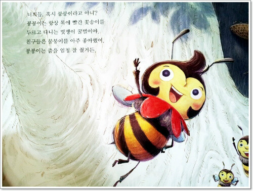꿀벌 붕붕이는 목에 항상 빨간 꽃송이를 두르고 다니는 친구에요..