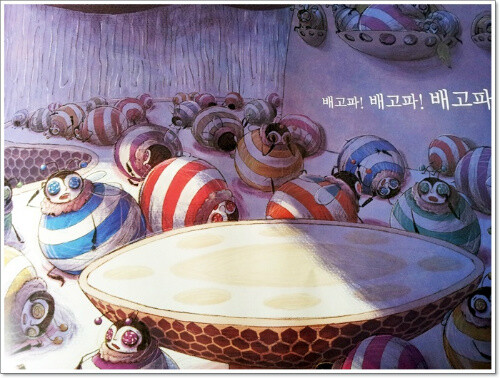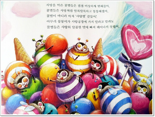 사탕을 먹은 꿀벌들은 점점 사탕처럼 알록달록해지고 뚱뚱하게 변해갔어요..