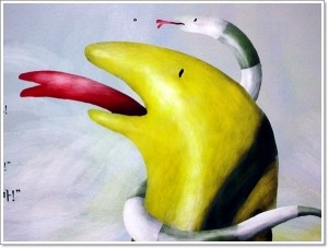 "아이 참, 멍청이! 바보! 어떻게 뱀이랑 지렁이를 구별도 못하냐? 엄마 뱀이 오기전에 숨을곳을 찾아야해!"